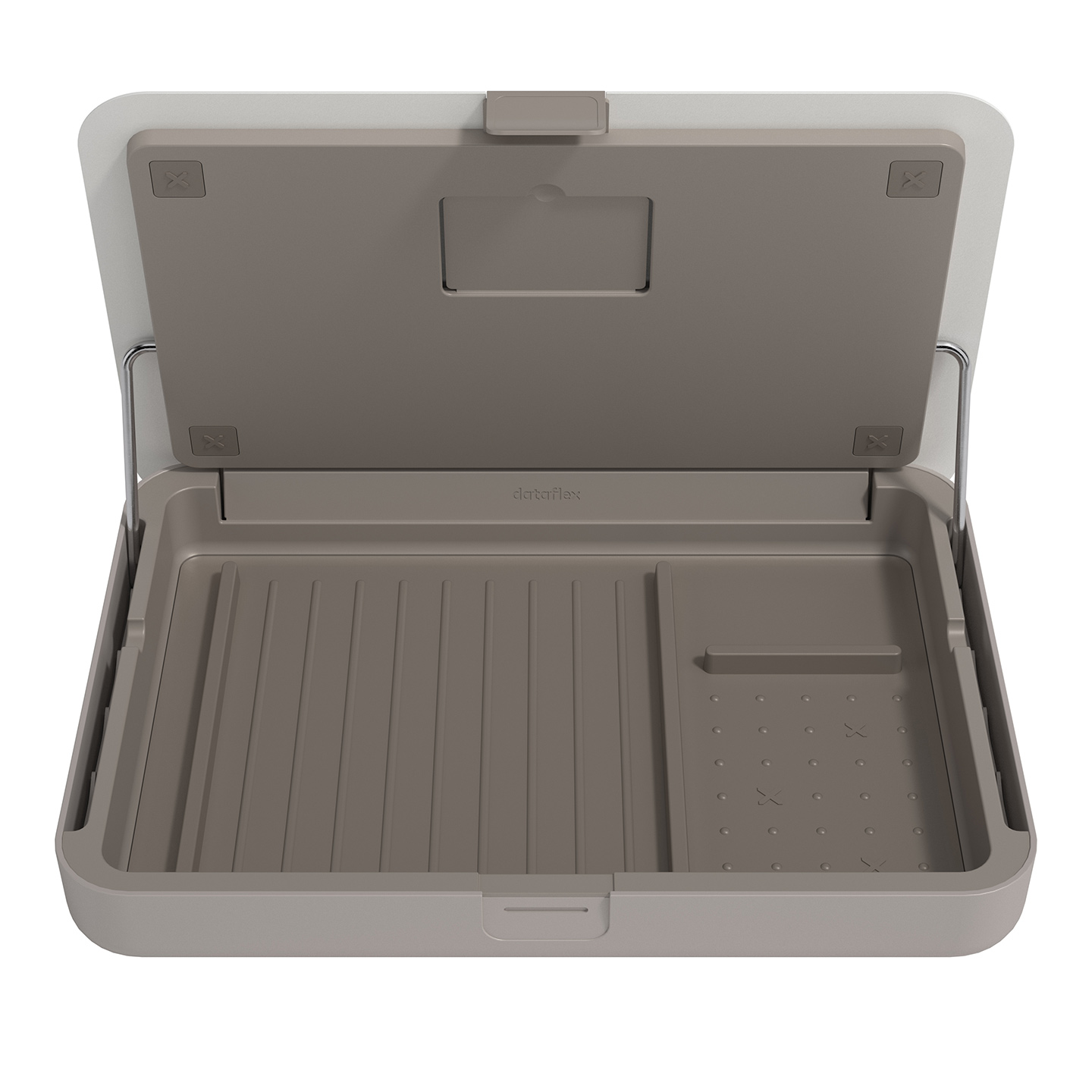 Nach dem Vorbild der japanischen Lunchbox bietet die ergonomische Toolbox Platz für Ihre persönlichen Utensilien. Gleichzeitig dient sie als ergonomische Halterung Ihrer bevorzugten Geräte oder Dokumente – egal, ob Sie an Ihrem Schreibtisch im Büro oder zu Hause arbeiten.